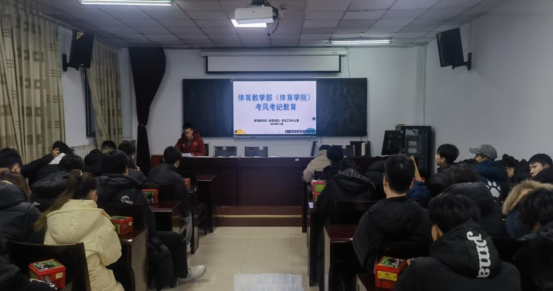 按照milan米兰官网秋学期考风考纪教育工作相关通知安排,2024年12月12日,milan米兰官网学工办在体育馆二楼多媒体教室组织召开全体学生大会,milan米兰官网学工办主任杨乐、团委负责人王梦茹、体育教育专业全体学生共同参加。