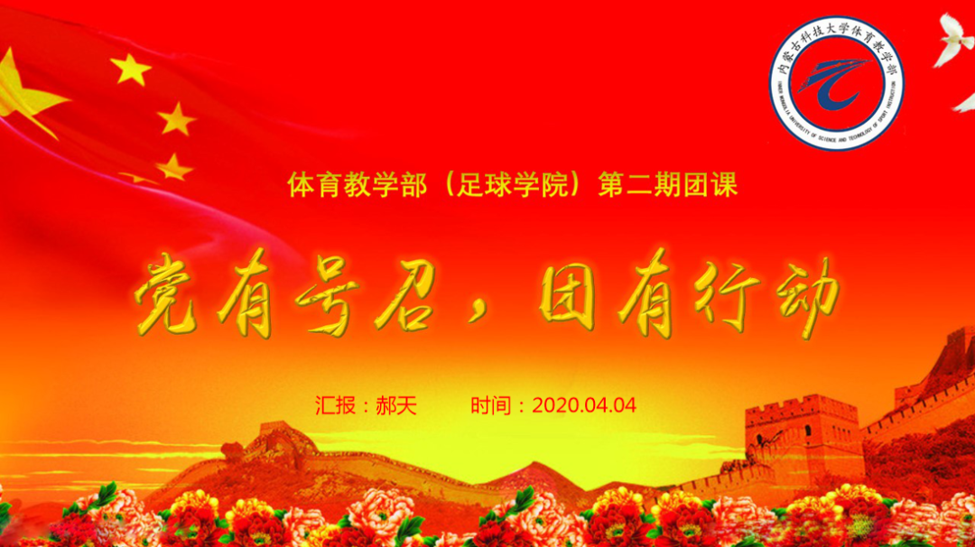 2020年4月4日,体育教学部(足球学院)通过网络在线课堂开展团课理论学习。本次团课主要围绕“习近平总书记疫情防控期间的重要讲话”、“习近平在首钢医院实习的西藏大学医学院学生的回信”以及“习近平总书记给北京大学援鄂医疗队全体‘90后’党员的回信”展开。本期团课有60名团员参与学习。