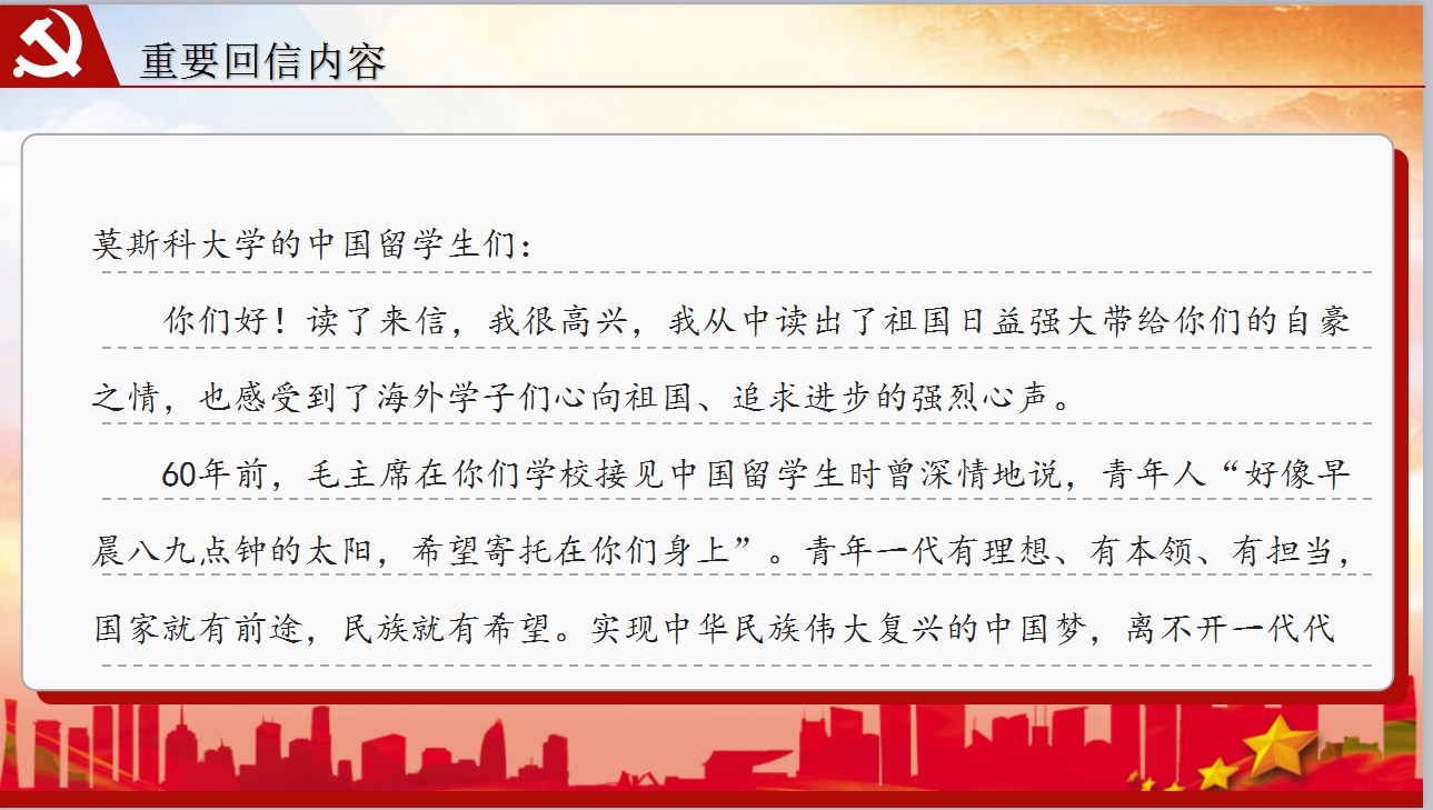 给莫斯科大学中国留学生重要回信精神