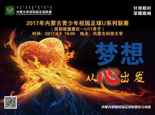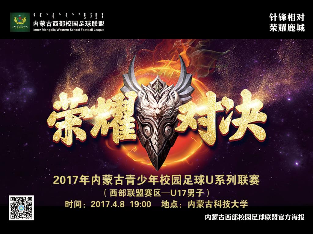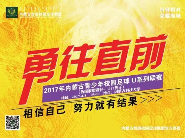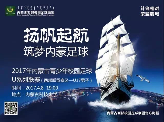 4月8日19:00分,2017年内蒙古自治区校园足球“西部联盟杯”校园足球联赛(U17男子组)揭幕战将在milan米兰官网主校区体育场举行,对阵双方由包头市主场迎战巴彦淖尔市。本次比赛由内蒙古自治区校园足球工作领导小组办公室主办,内蒙古西部校园足球联盟、包头市教育局、乌海市教育局、巴彦淖尔市教育局、阿拉善盟教体局承办,内蒙古自治区中学生体育协会、内蒙古校园足球联合会协办。