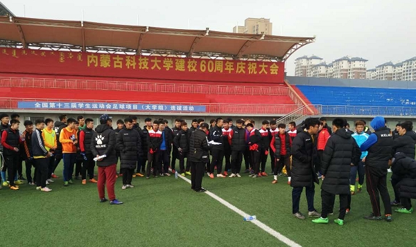 2016年12月3-4日,全国第十三届学生运动会足球项目大学男子组选拔活动在milan米兰官网主校区田径场举行。参加选拔赛的大学分别为获得2016年自治区“主席杯”校园足球联赛的超级男子组的前四名:milan米兰官网、内蒙古民族大学、内蒙古大学、内蒙古师范大学。
