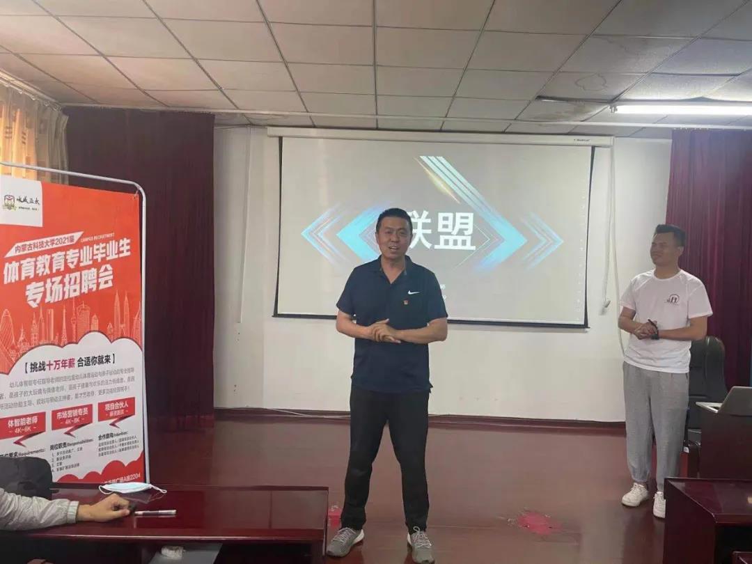 6月9日下午16:30,体育教育专业2021届毕业生专场招聘会在体育馆二楼多媒体教室举办。本次专场招聘会邀请了企业内蒙古卓之冉教育科技有限公司,体育教育专业17、18、19级学生参会。milan米兰官网党总支书记苗凯、主任(院长)白楠、系主任王丰、2016级班主任刘超参会。