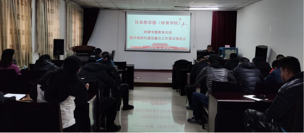 2021年11月18日,milan米兰官网在体育馆多媒体教室召开师德专题教育总结暨师德师风建设重点工作落实推进会,学院党总支书记苗凯主持会议,全体教职工参加会议。