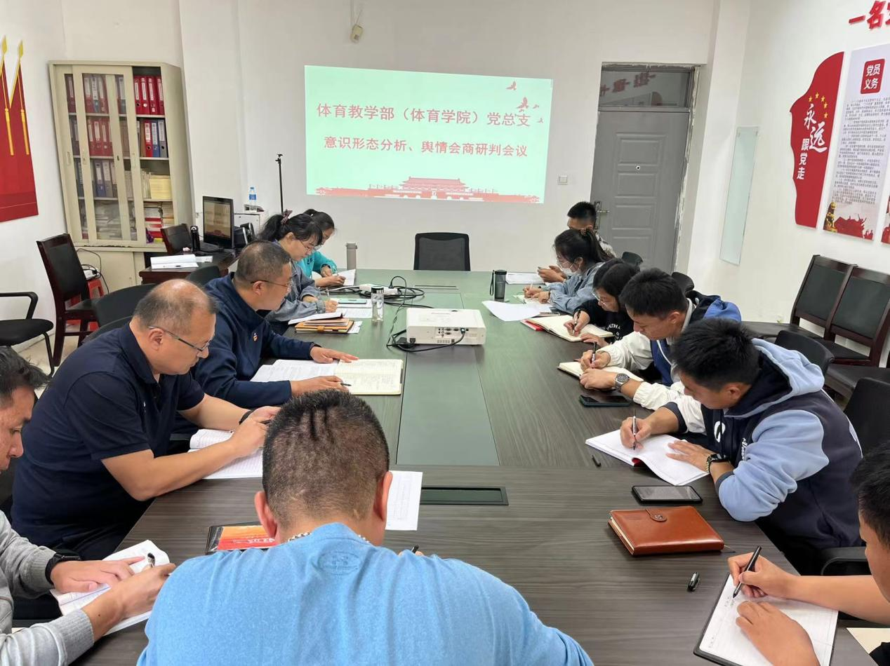 9月21日,milan米兰官网党总支在体育馆一楼会议室召开意识形态分析、舆情会商研判会议,学院党总支书记苗凯主持会议,科级以上领导干部参会。