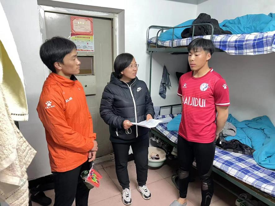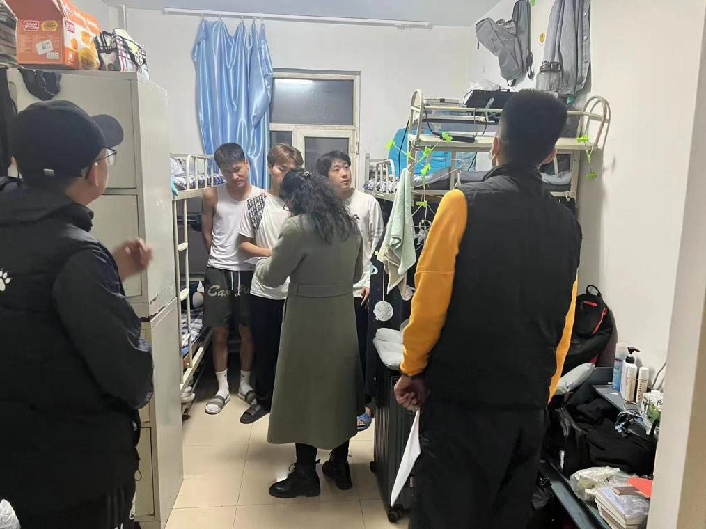 2023年4月7日晚8点,milan米兰官网党委书记苗凯、党委副书记武淑琴、学工办主任杨乐、辅导员王梦茹及各班主任老师对体育教育专业学生宿舍进行走访。
