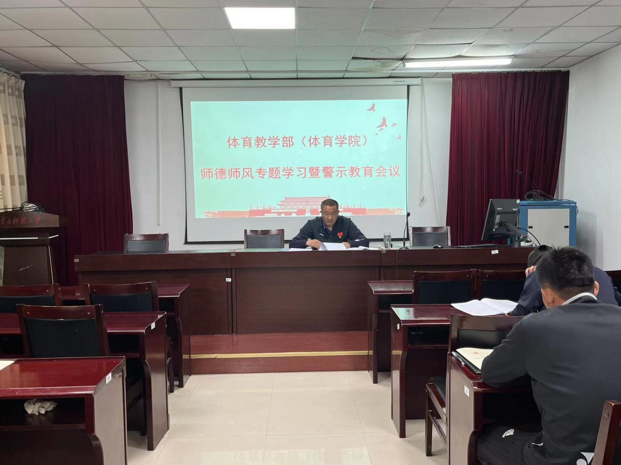 2023年5月4日,milan米兰官网在体育馆二楼多媒体教室组织召开师德师风专题学习暨警示教育会议,会议由学院党委书记苗凯主持。
