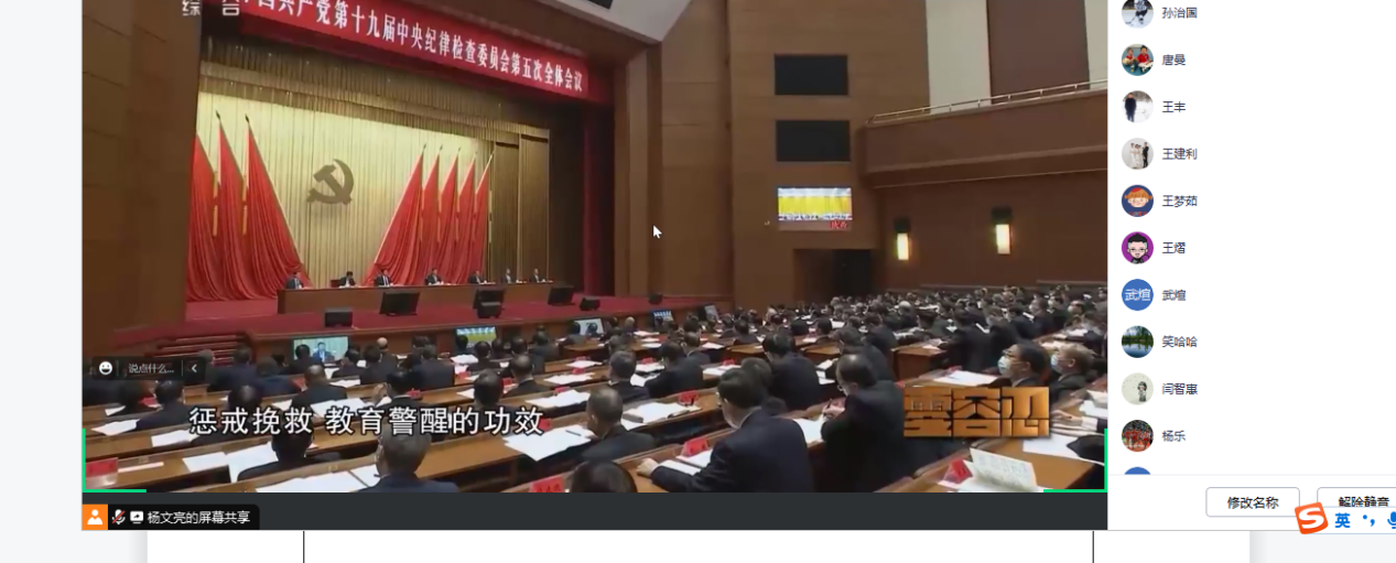 会议第三项,开展警示教育。与会人员共同观看警示教育电视专题片《零容忍》第三集《惩前毖后》。