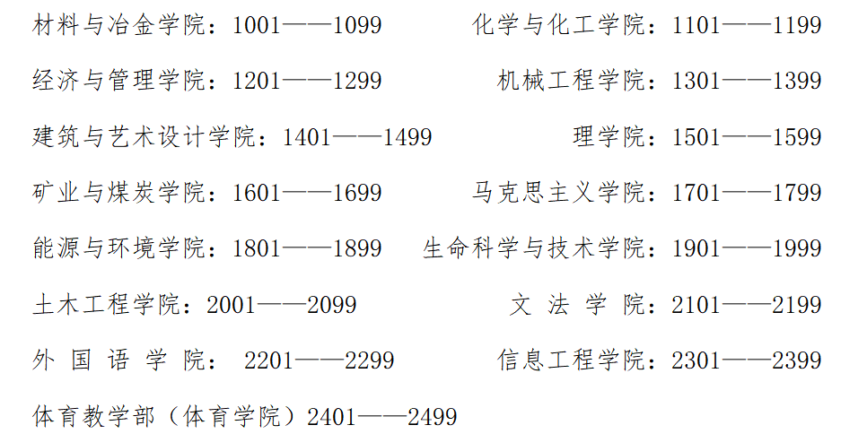 八、各学院号码布号段分配