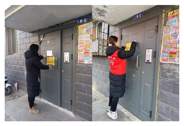 到达社区后,志愿者们在社区工作人员的安排下,开展禁止电动车入楼消防安全宣传活动。志愿者们在各楼栋单元门张贴警示标识,并向群众发放宣传手册,为居民讲解电动车发生火灾的危害性及电动车火灾的防范措施,提醒广大居民将电动车停放在规定地点,进一步提高居民的消防安全意识,消除小区楼道的安全隐患,杜绝因电动车在楼道内充电造成安全事故。