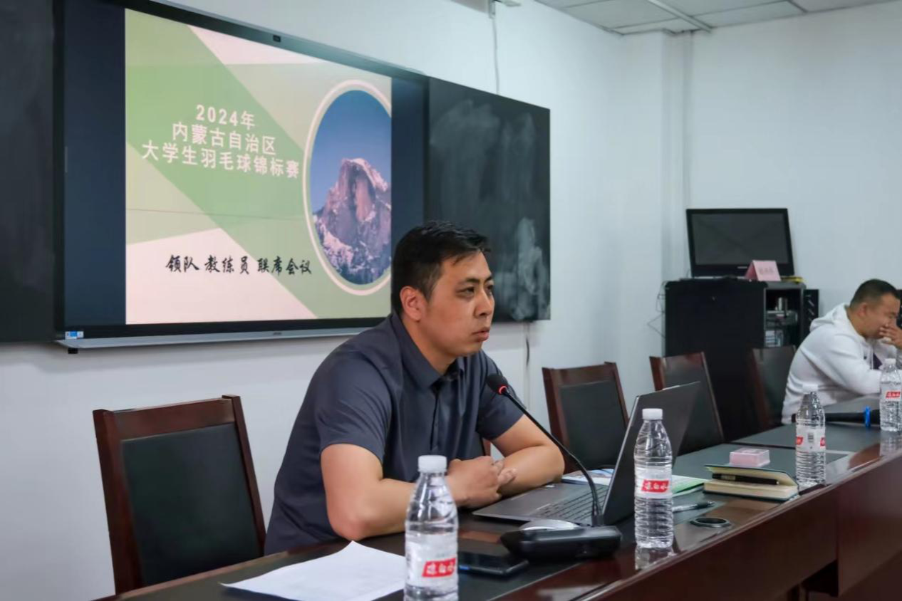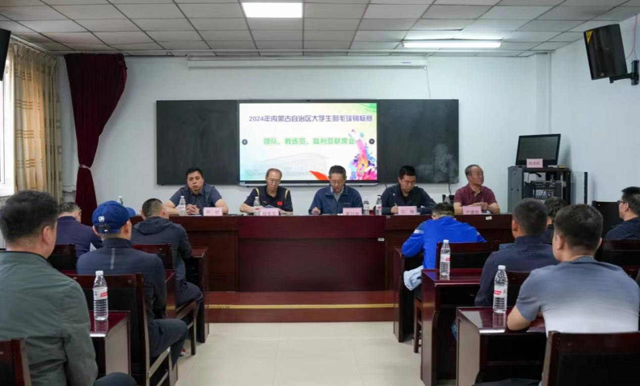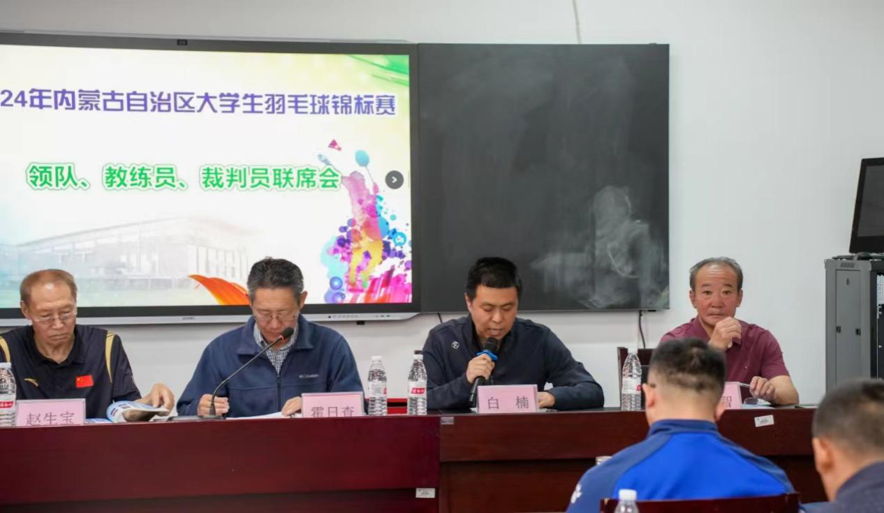 2024年4月11日,2024年内蒙古自治区大学生羽毛球锦标赛赛前联席会在milan米兰官网体育馆召开。内蒙古学生体育协会会长霍日查,内蒙古学生体育协会副会长赵生宝,milan米兰官网主任(院长)白楠,技术代表尹建智,裁判长程轶,各参赛队伍领队、教练参会,会议由赵生宝主持。