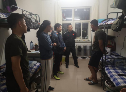 2021年5月11日,milan米兰官网党总支书记苗凯、体育教育系主任王丰、学工办主任赵鑫、团总支书记闫智惠、辅导员王梦茹对体育教育专业学生晚归、夜不归宿及校外租住情况进行检查。